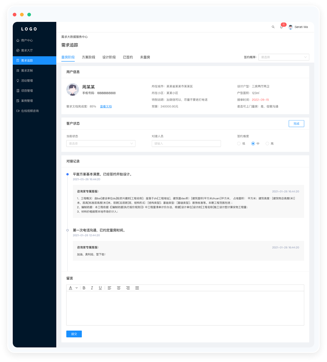 商户可根据用户需求文档高效定制精准方案,减少无效沟通成本,大幅提升签单效率